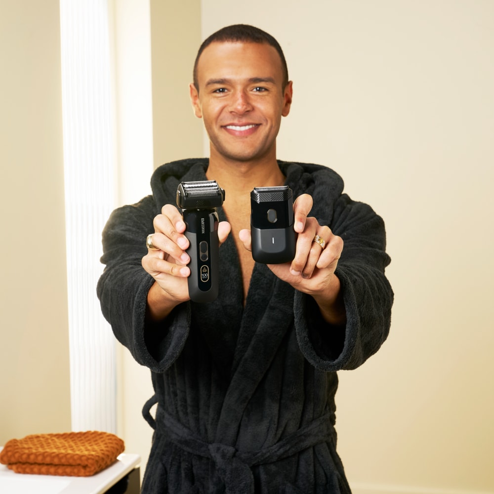 Leave one at home and throw the other in your pocket. The Here & There Bundle is peak versatility for electric foil face shavers, taking you from stubble to smooth wherever you are.